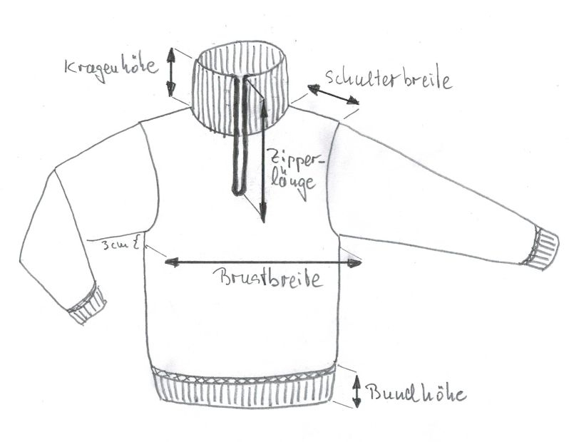 Rippkragen und Bund gedoppelt, Armbündchen umgeschlagen